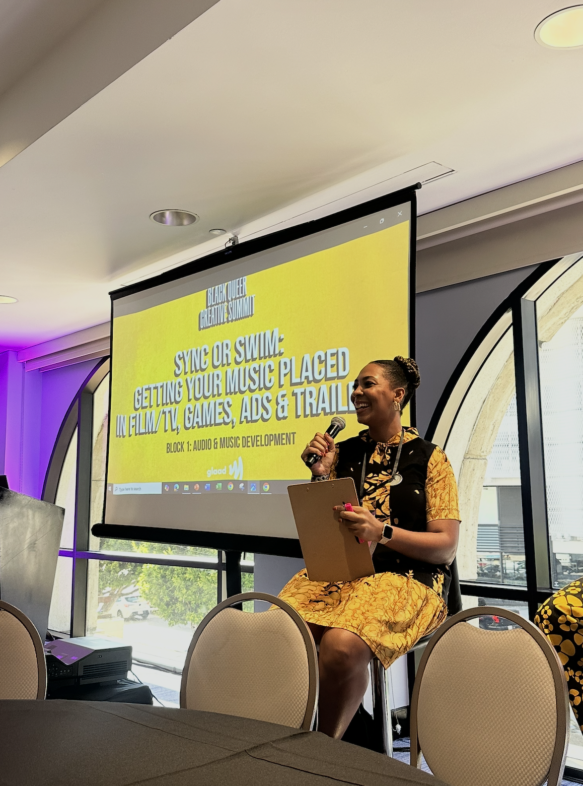 Jasmin speaking at the 2025 GLAAD Black Queer Creative Summit.